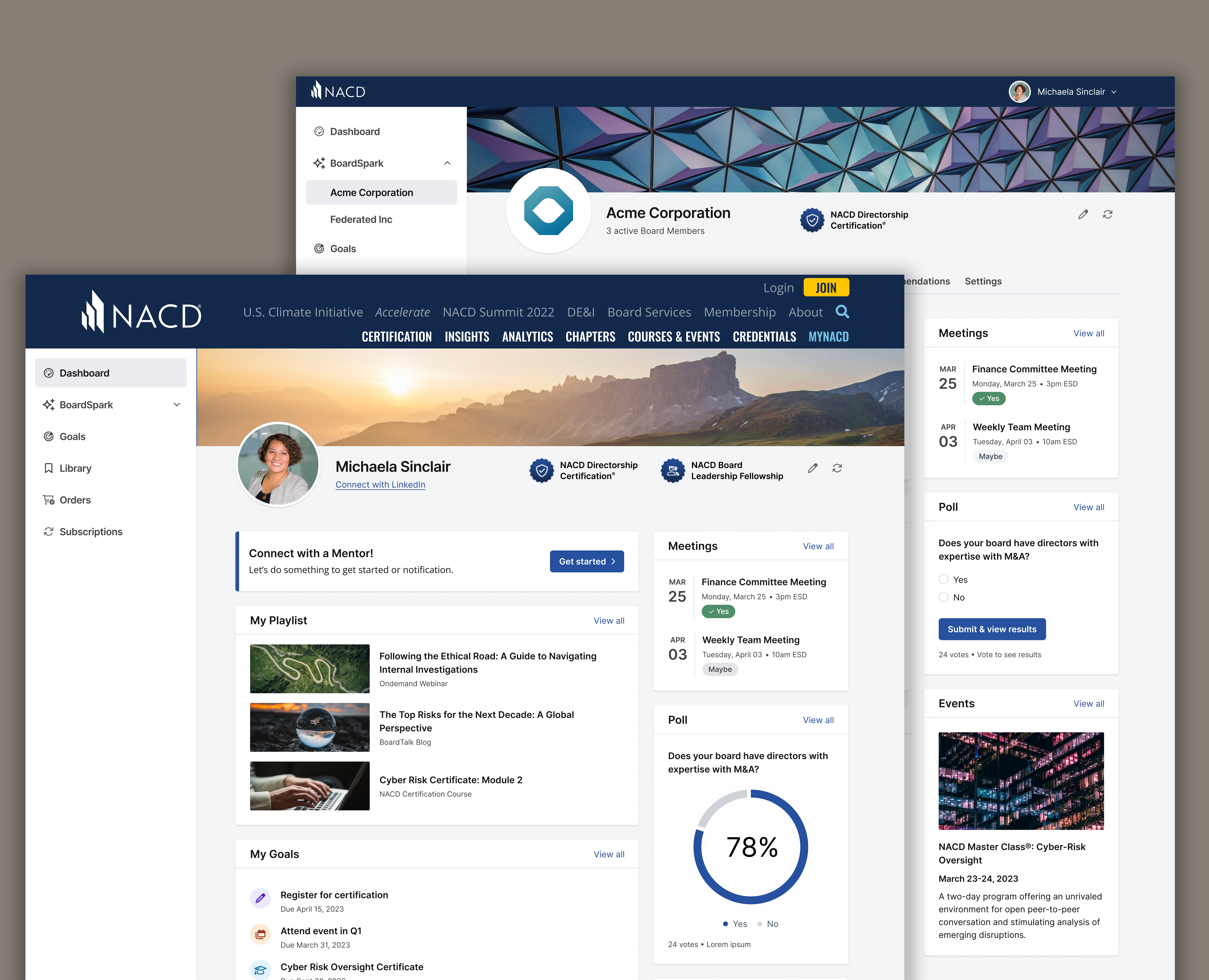 Led the research, design, and development of NACD’s internal social portal, so that Corporate directors could share insights, knowledge, and best practices via a gamified solution.